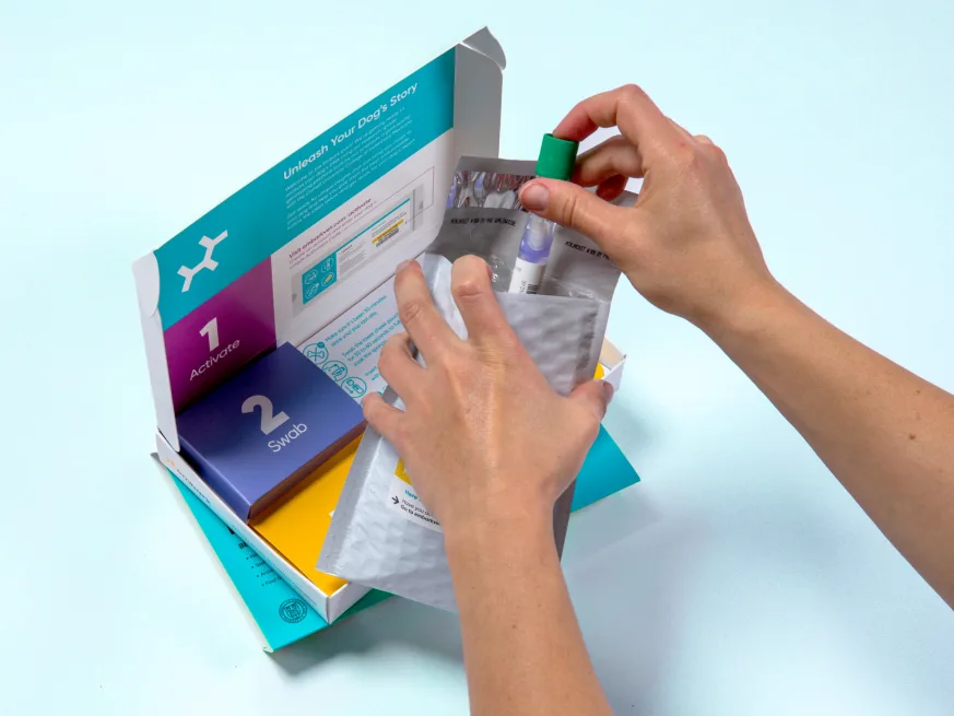You simply swab the inside of your dog’s cheek for about 30–60 seconds, activate the kit online, and send it back using the prepaid return envelope.